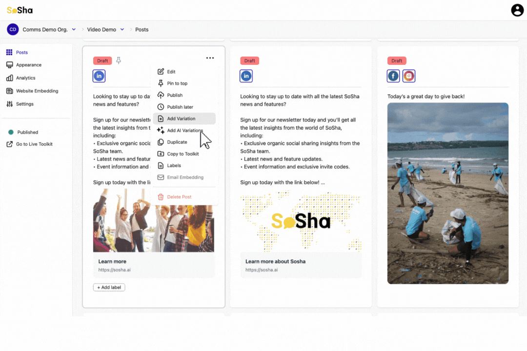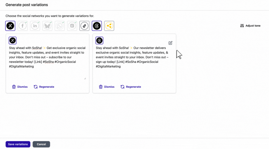 Edit the text, visuals, and other post elements to fit the specific social platform.