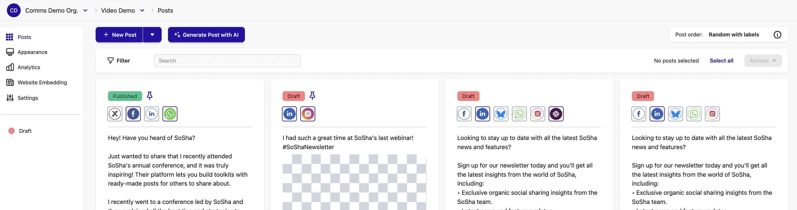 From the toolkit menu, click on the toolkit you want to publish. Once within the toolkit's post creator interface, navigate to the 'Settings' on the left-hand menu.